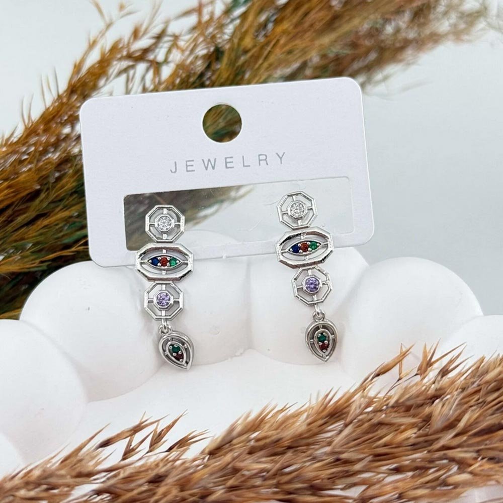 Topçuk Model Zirkon Taşlı Gold Renk Pirinç Küpe Seti