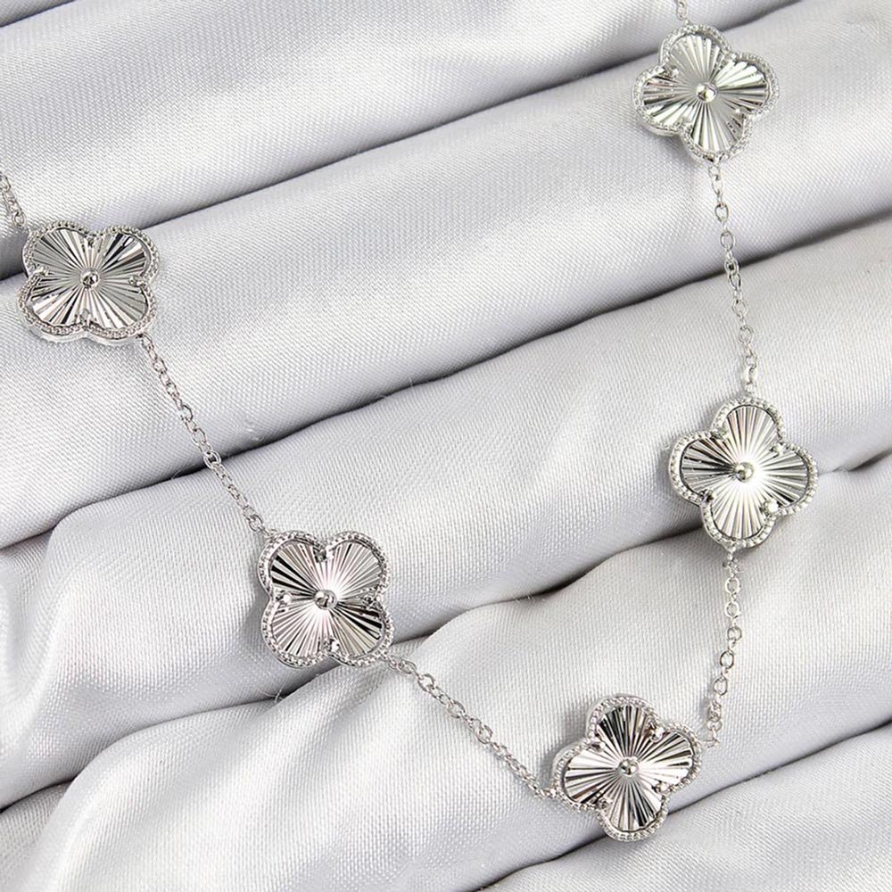Pirinç VIP Yonca Model Gümüş Renk Kadın Kolye