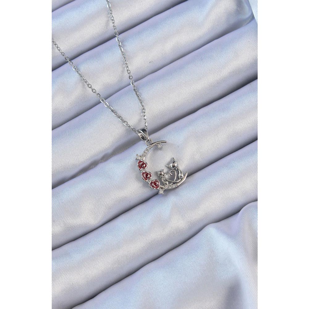 Gümüş Renk Zirkon Taşlı Kalp Model Kadın Kolye