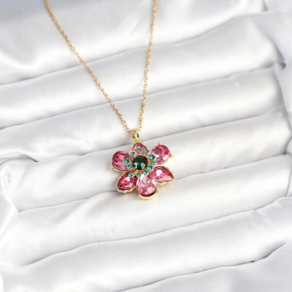 316L Çelik Zincirli Pembe Çiçek Model Kadın Kolye