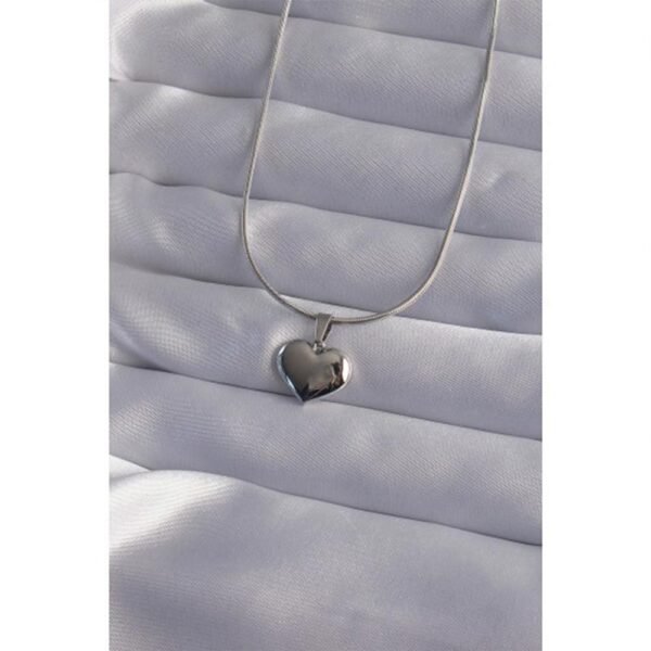 316L Çelik Zincir Gümüş Renk Ayna Plaka Kalp Kolye