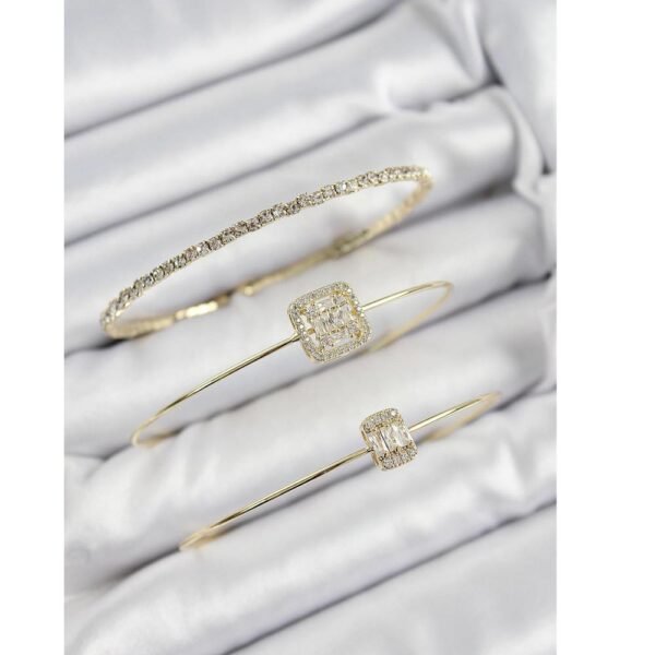 Pirinç Zirkon Taşlı Baget Model Gold Renk Vip 3’lü Kadın Bileklik