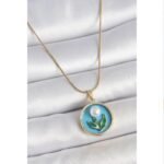 Sedefli Portre Model Zümrüt Taşlı 316L Çelik Kolye