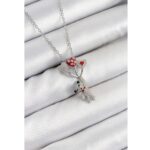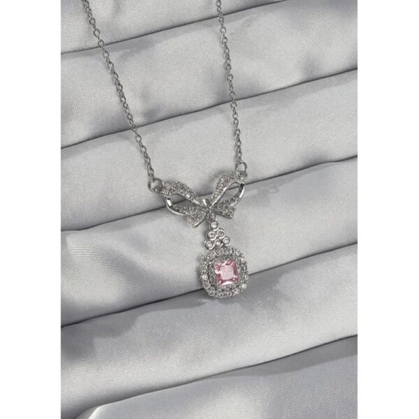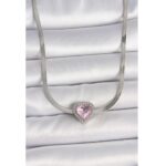 316L Çelik Gümüş Renk Zincir Pembe Kristal Kalp Zirkon Taşlı Kurdele Model Kadın Kolye