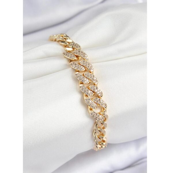 Pirinç Zirkon Taşlı Küba Zincir Model Gold Renk Kadın Bileklik