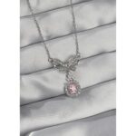 Pembe Zirkon Taşlı Kalp Model Kadın Kolye