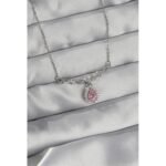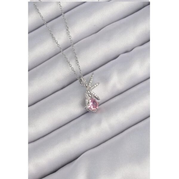 316L Çelik Zincir Gümüş Renk Pembe Zirkon Taşlı Peri Kolye