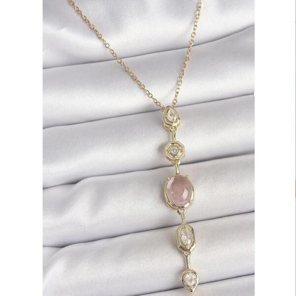 Pembe Zirkon Taşlı Y Kolye