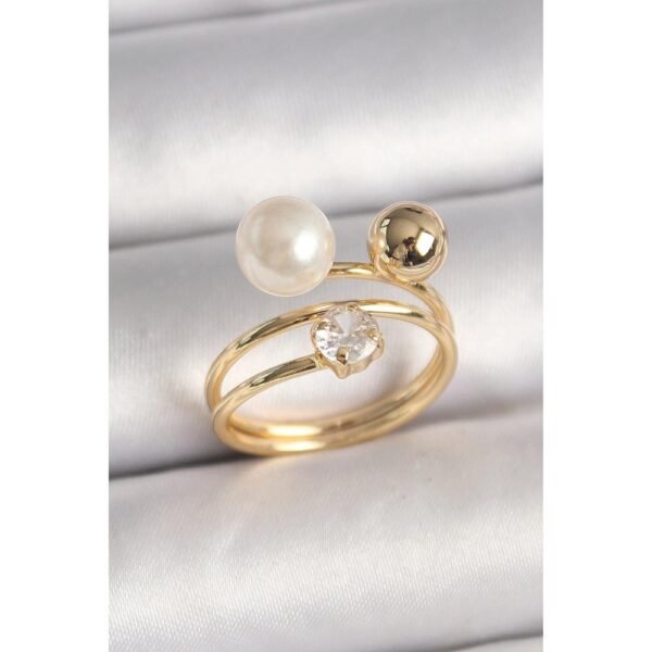 Pirinç Gold Renk Zirkon Taşlı Top İnci Model Kadın Yüzük